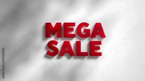 Fototapeta premium Bold red Mega Sale text with dramatic shadows on a clean white background