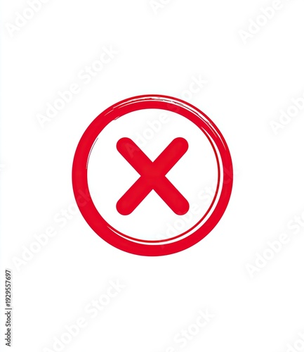 Obraz premium Bold red 'X' mark inside a thick red circle on a white background
