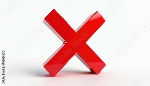 Fototapeta premium Bold red X mark on clean white backdrop. Simple cross symbol indicates...