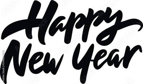 © Murshida, Obraz premium Bold Script Happy New Year Text Calligraphy Design Isolated on White Background