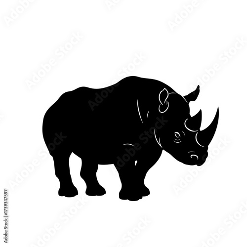 © Vector Hub24, Fototapeta premium Bold silhouette of a powerful rhinoceros standing majestically a symbol of strength and wildlife conservation isolated on white background