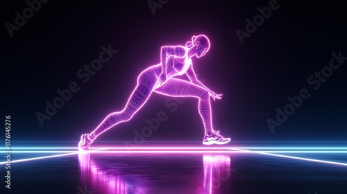 Fototapeta premium Bold sportswear sale banner, neon-lit workout scene, ample space for discount messaging, high-contrast colors, powerful and eye-catching