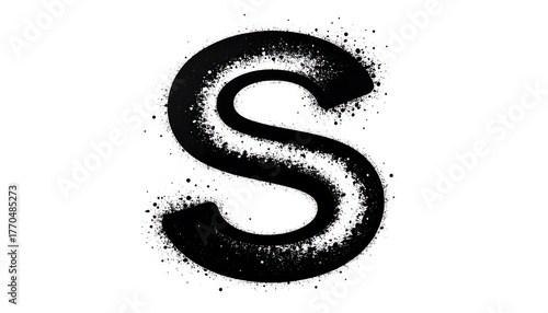 © Bapuq, Obraz premium Bold, stylized capital letter "S" rendered in black spray-paint effect against a clean, white background. The edges show an irregular splatter