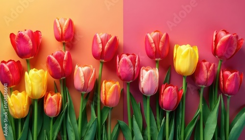 © Sourithideth, Fototapeta premium Bold stylized tulips arranged in a square grid , nature, tulip
