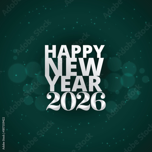 © , Fototapeta premium Bold typographic 2026 Happy New Year greeting on modern green background