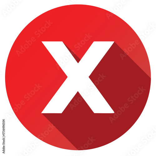 Obraz premium Bold white x mark on a red circle with shadow