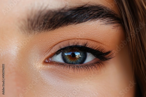 © Thanapong, Obraz premium Bold winged eyeliner makeup tutorial close-up shot of eye beauty content focused on makeup techniques intimate environment artistic viewpoint for stunning visual appeal