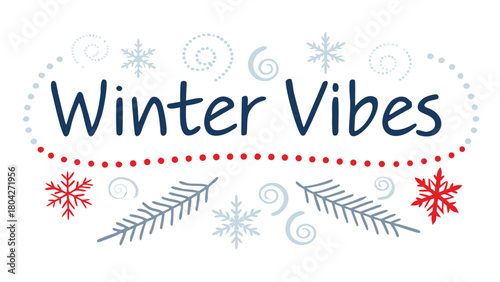 © Syed, Naklejka premium Bold winter vibes lettering with swirling snow perfect for holiday greetings seasonal promotions and festive designs