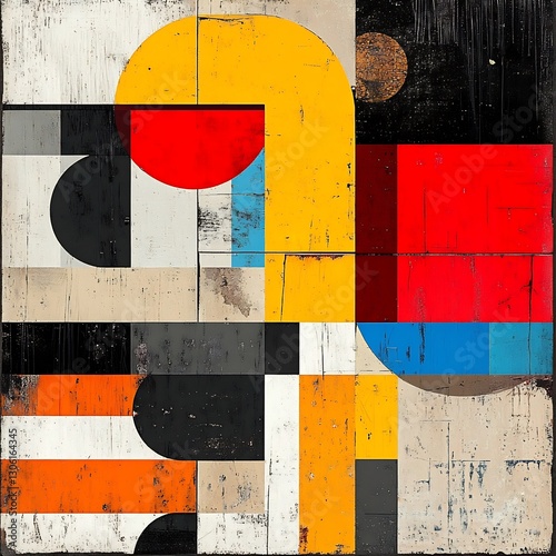 © Siriroj, Naklejka premium Boldly Contrasting Geometric Shapes and Vivid Colors in Creative Modern Abstract Art Composition