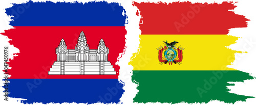 Obraz premium Bolivia and Cambodia grunge flags connection vector