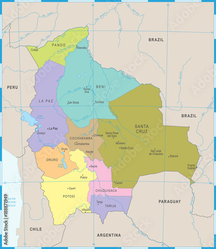 © Porcupen, Fototapeta premium Bolivia Map - Detailed Vector Illustration