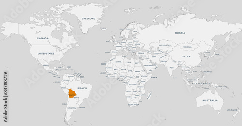 Naklejka premium bolivia map.Geographical map of bolivia with world map highlighted.