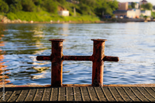 © Юлия Тарабанова, Fototapeta premium Bollard and ropes. Seaside vacation. Yachting. Sea travel.