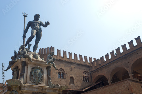 Fototapeta premium Bologna (Italy) Neptune's bronze statue and historic palace