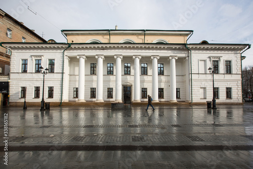 Fototapeta premium Bolshaya Pokrovskaya street in Nizhny Novgorod without people after rain with...