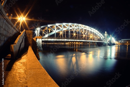 © dojo666, Fototapeta premium Bolsheokhtinsky Bridge through Neva River in St. Petersburg