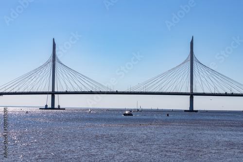 Naklejka premium Bolshoy Obukhov Bridge in St. Petersburg. Cable-stayed bridge across the Neva...