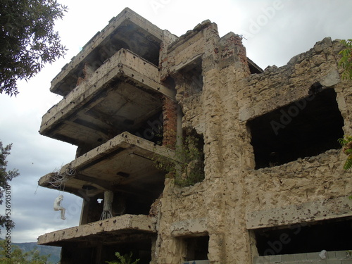 Naklejka premium Bombed Buildings on the Old Frontline of Mostar
