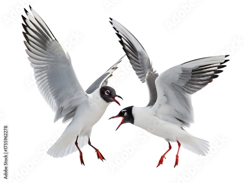 © kabir, Obraz premium Bonaparte’s Gulls Fighting Mid-Air Isolated on White