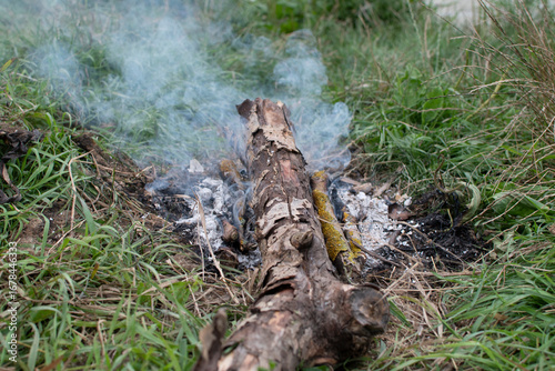 © PumpedVisuals, Obraz premium Bonfire with burning firewood