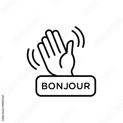 Fototapeta premium Bonjour text with hand wave icon simple vector symbol