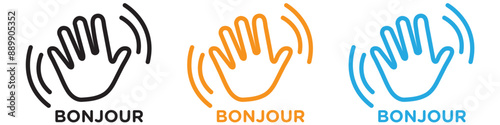Obraz premium Bonjour text with hand wave vector logo set collection for web app ui