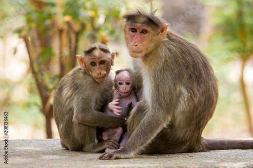 © Hummingbird Art, Fototapeta premium Bonnet macaque family near Bangalore India.