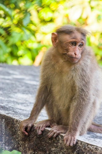 © YKD, Fototapeta premium Bonnet Macaque monkey sitting on the roof