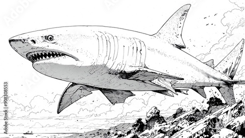 © Cross Guild, Fototapeta premium bonnethead shark black and white animal black and white