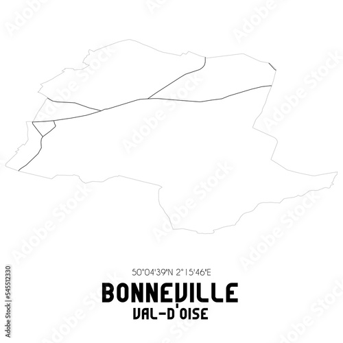 Obraz premium BONNEVILLE Val-d'Oise. Minimalistic street map with black and white lines.
