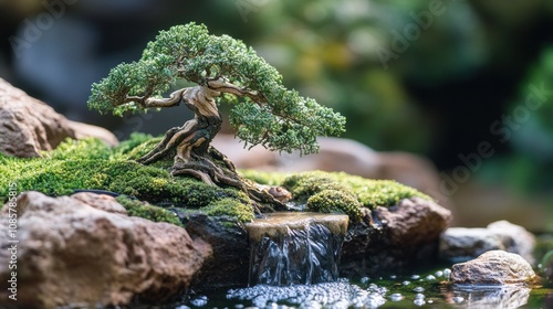 © Aulia, Obraz premium Bonsai Tree with Waterfall