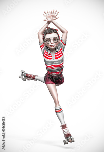 © DM7, Obraz premium boogie rollergirl is skating front view