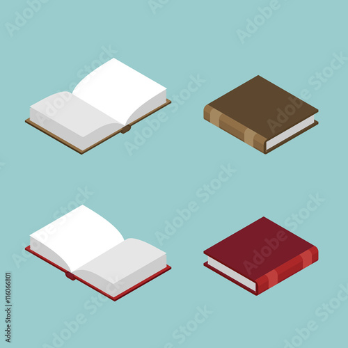 Obraz premium Book isometric set. Open volume isolated. Ancient text. old edit