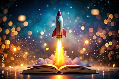 Fototapeta premium Book Launch Rocket: Bokeh Lights Celebrate New Release