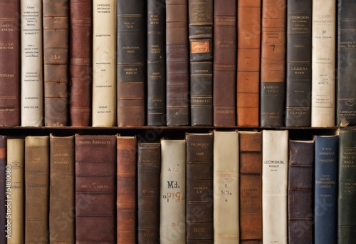 © Yaraslava, Naklejka premium book, library,background,blank,illustration,collection,unmarked,knowledge,horizontal,shelf,compact,minimalism,arrangement,generic, pure, paper,reading,visual,numerous,book,spine,plain,simplicity