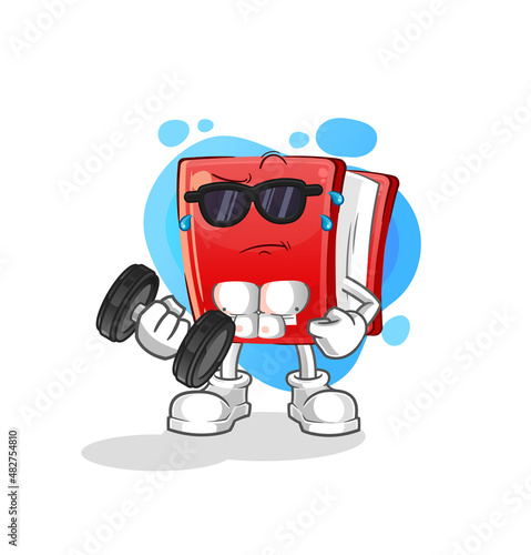 © dataimasu, Fototapeta premium book lifting dumbbell vector. cartoon character