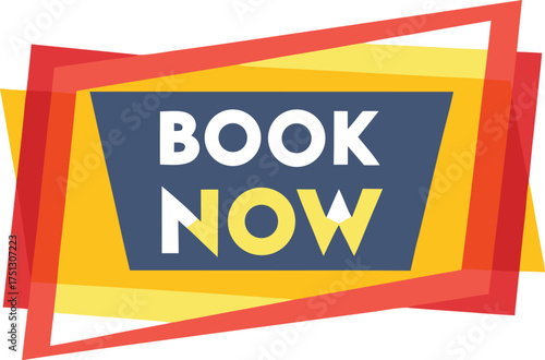 Fototapeta premium Book now text layered shapes white yellow