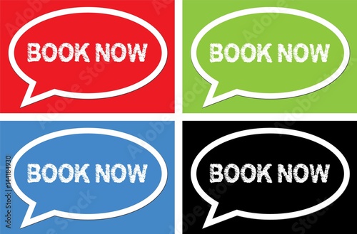Fototapeta premium BOOK NOW text, on ellipse speech bubble sign.