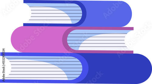 Fototapeta premium Book stack is showing flat vector with blue-pink covers and striped pages, transparent background