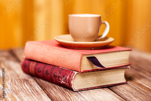 Naklejka premium Books and a coffee cup