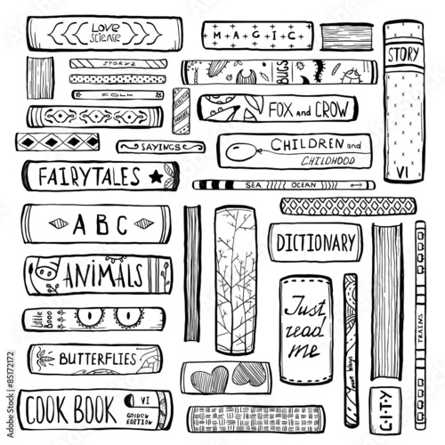 © Popmarleo, Naklejka premium Books Collection Monochrome Inky Outline Illustration