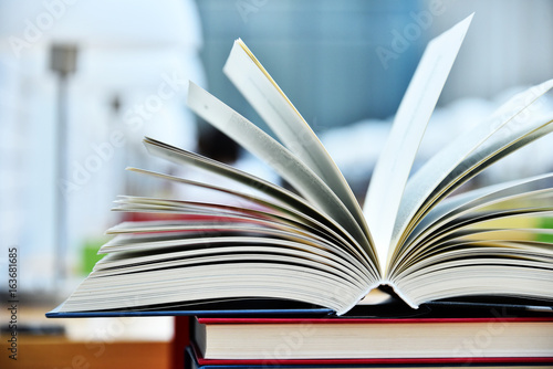 © monticellllo, Fototapeta premium Books lying on the table in the public library