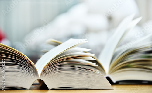 © monticellllo, Fototapeta premium Books lying on the table in the public library