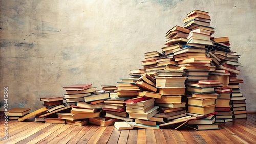 Obraz premium Books piled on the floor in a messy stack , education, literature, reading,...