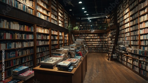 Fototapeta premium Bookstore with shelves of novels and magazines background