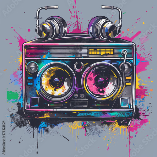 © Krisana, Fototapeta premium Boombox Vibes Retro boombox with vibrant graffiti-style elements, Professional tshirt design vector,generative ai
