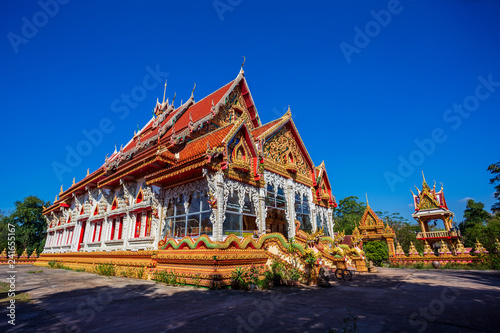 Naklejka premium Boonyavas Temple, the red and white small temple in Chum Phae District Khonkaen Thailand