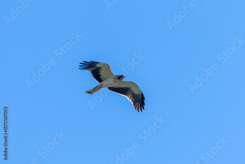 Obraz premium Booted eagle in the Marjal dels Moros wetland, Sagunto, Spain