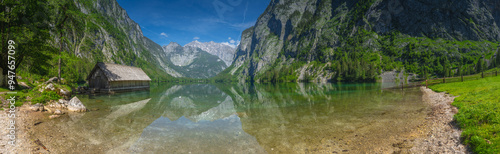 Fototapeta premium Bootshaus am Obersee lake in Berchtesgaden National Park, Alps Germany