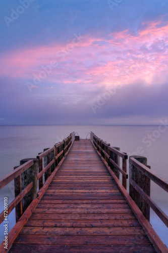 © Ronny Müller, Obraz premium Bootssteg am Meer zum Sonnenuntergang